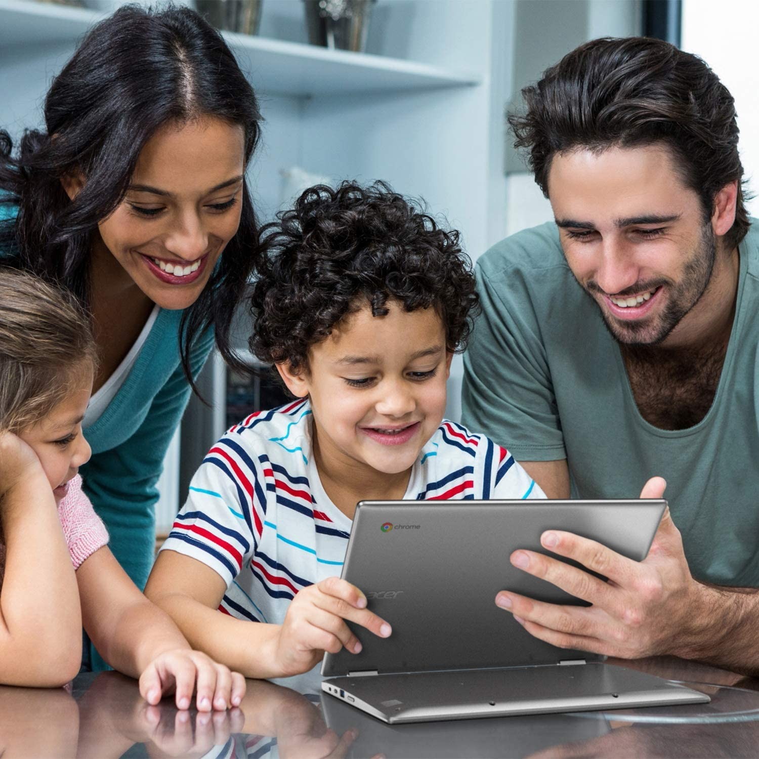 The stylish Chromebook Spin 311 easily transforms into anything you need it to be—thanks to its versatile, 360° Hinge that lets you rotate it to any angle to create a Notebook, stand-up Display, Tent or Tablet. This super-cool functionality allows you to take it anywhere and use it everywhere! The awesome features on this touch Chromebook with HD display include a wide-angle view Webcam—supporting HDR imaging—that enhances face-to-face chats and video conference experiences.