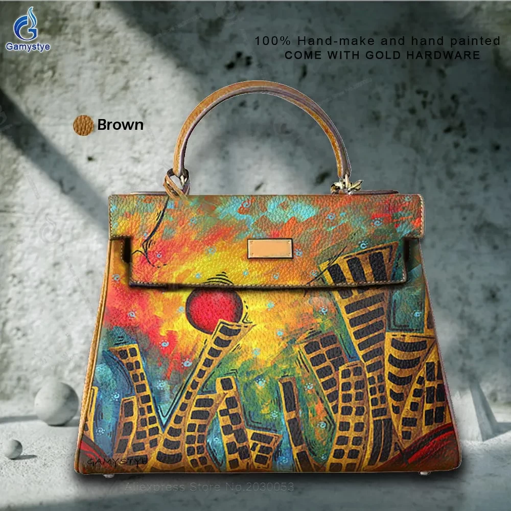 Hand Painted KALIThe fiery red s Bags Women Genuine Leather Handbags and Purses Luxury Fashion Designer Crossbody Bags For Women
