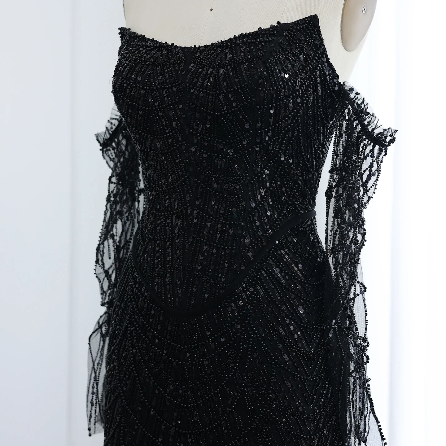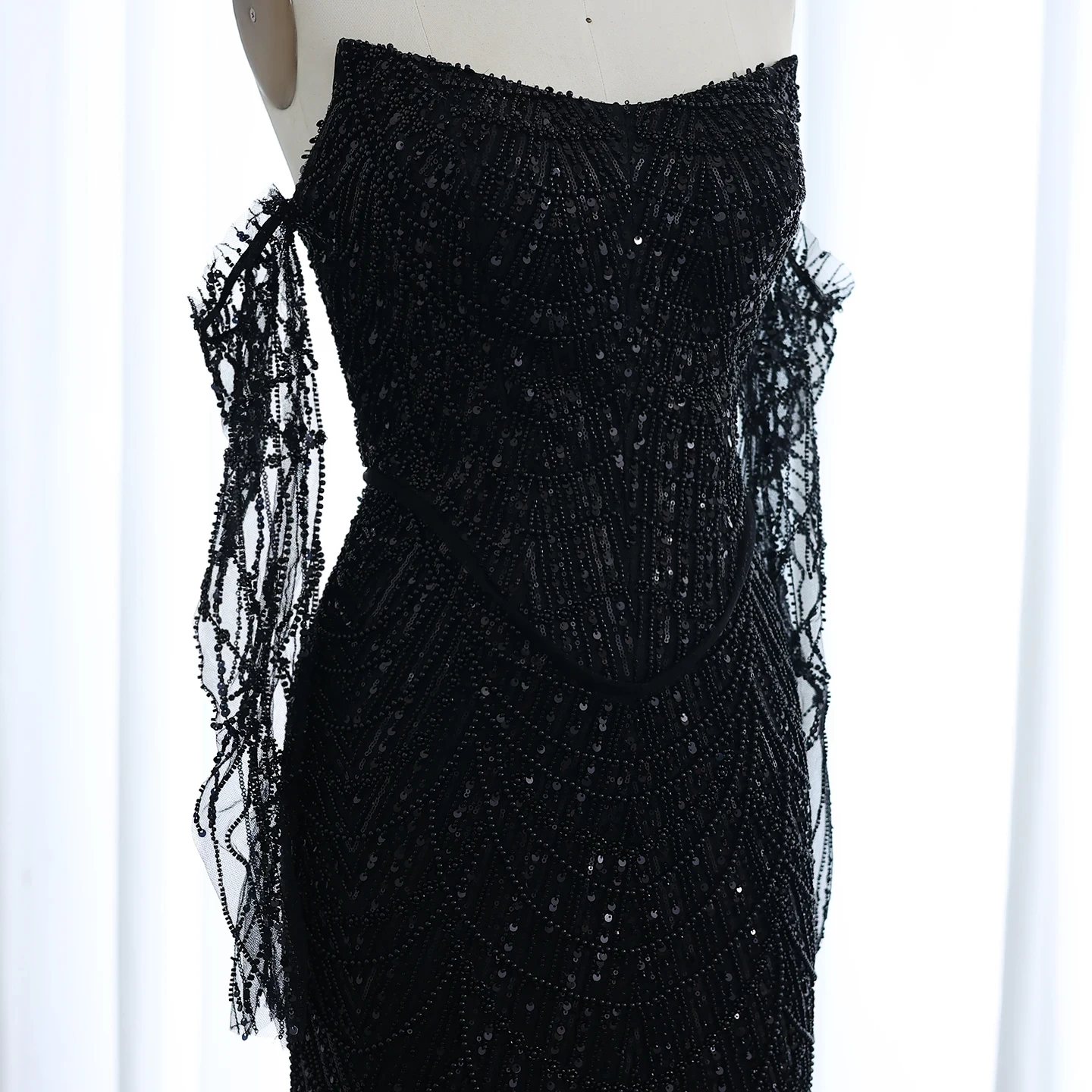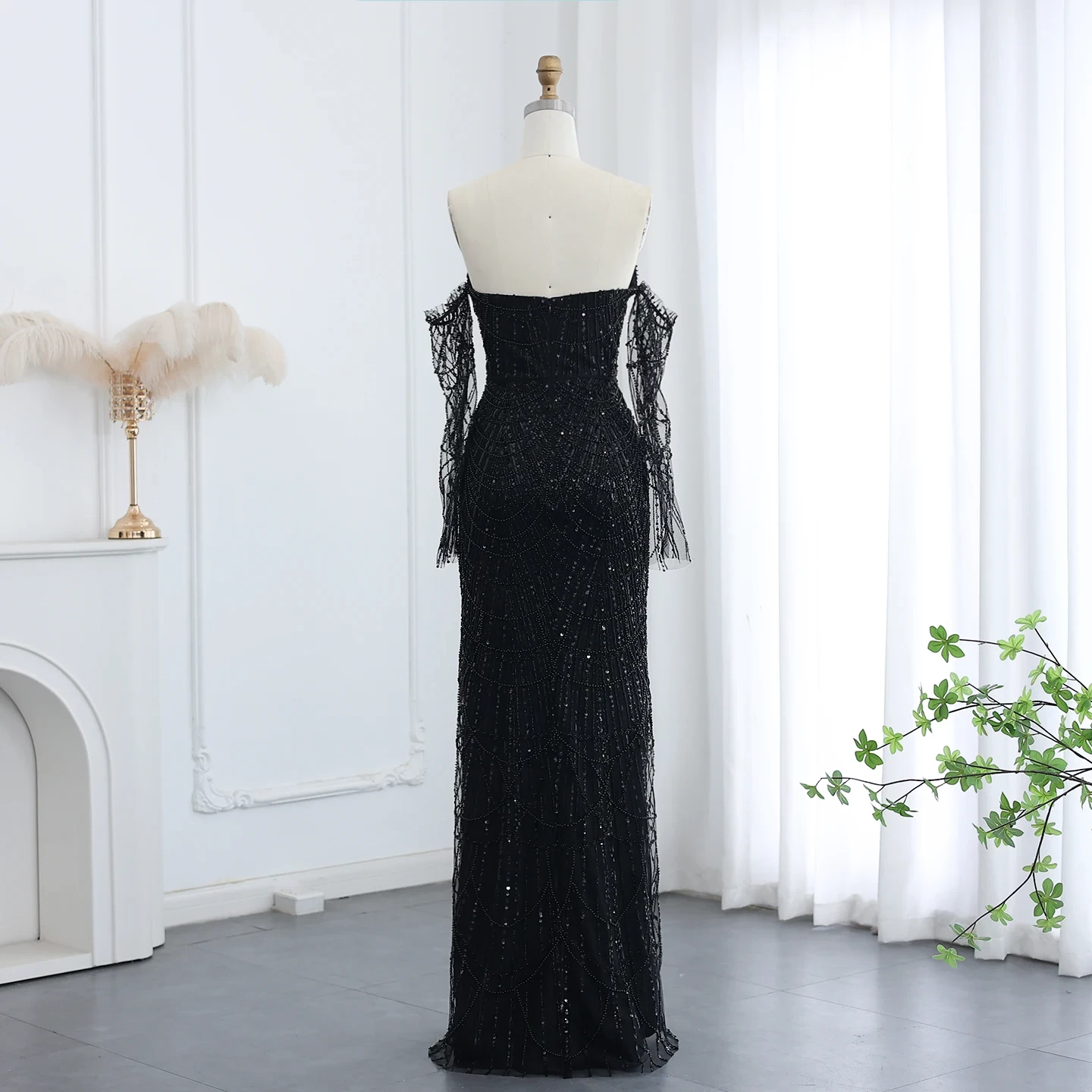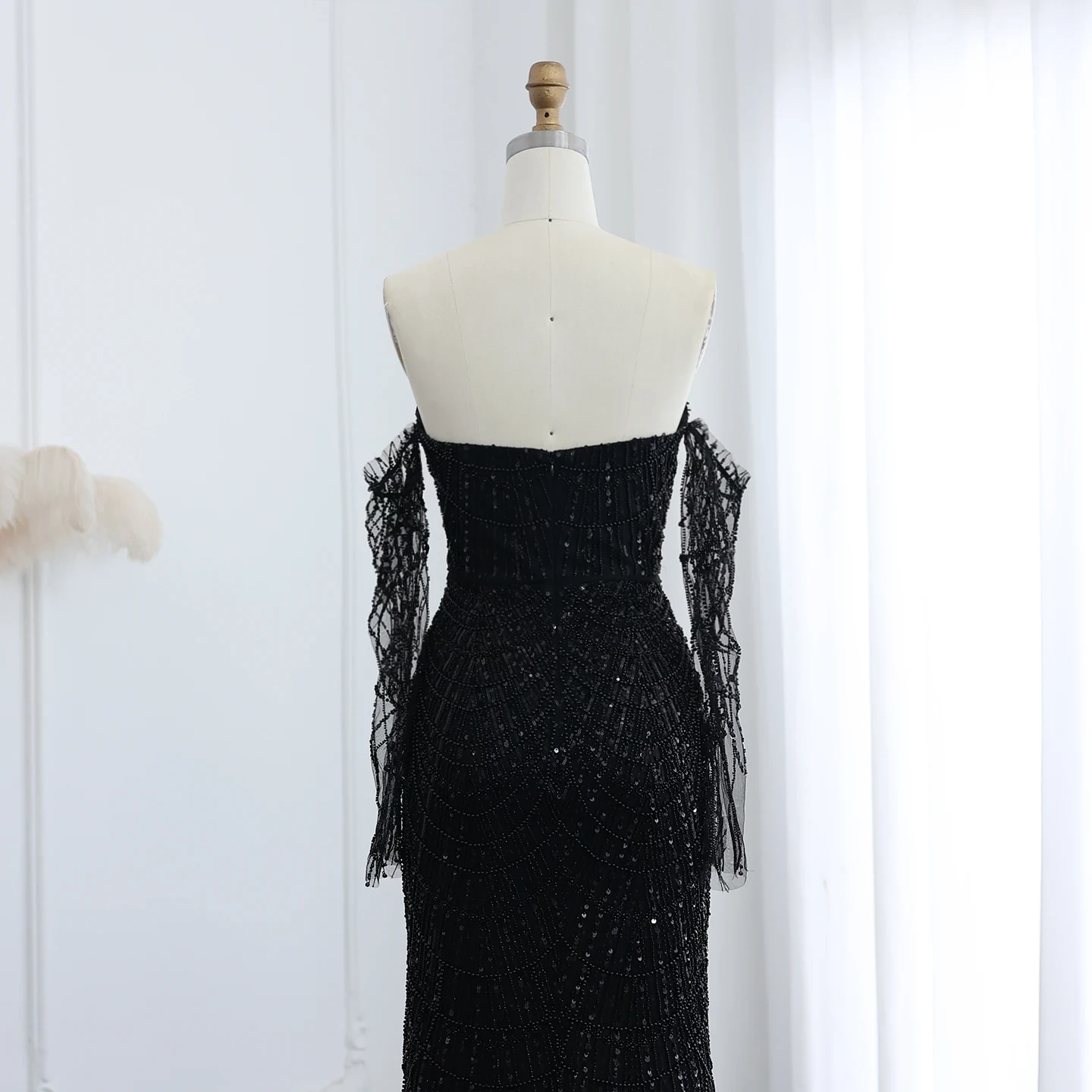 Sharon Said Luxury Beads Black Mermaid Long Sleeves Arabic Evening Dresses for Women Party Formal Dresses Dubai Prom Dress SS113