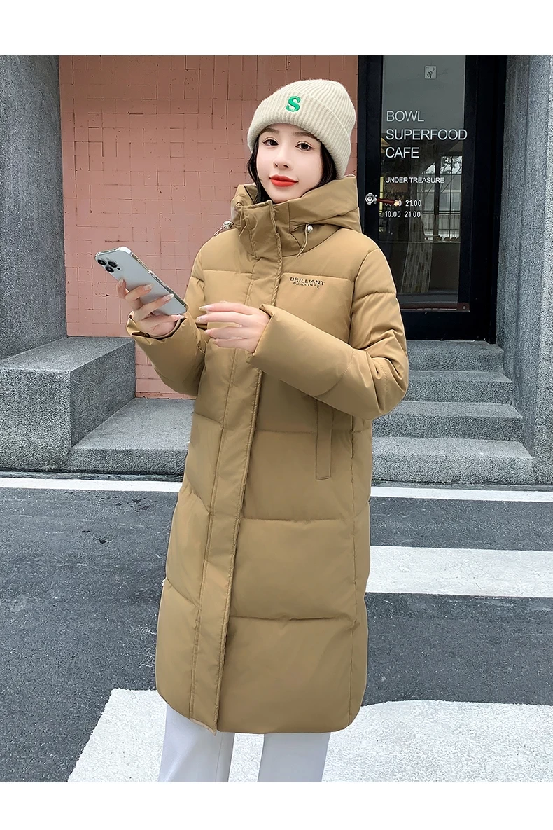 Women's Long Down Cotton Jacket 2023 Winter New Korean Windproof Warm Hooded Female Parka Clothes Coat